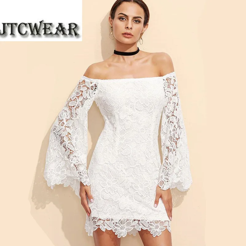 Hakelspitze Weisse Sexy Kleid Slash Neck Schulterfrei Durchsichtig Ausgestelltes Langarm Party Nachtclub Vestidos Kleider 522 White Sexy Dress Sexy Dresssexy See Through Dress Aliexpress