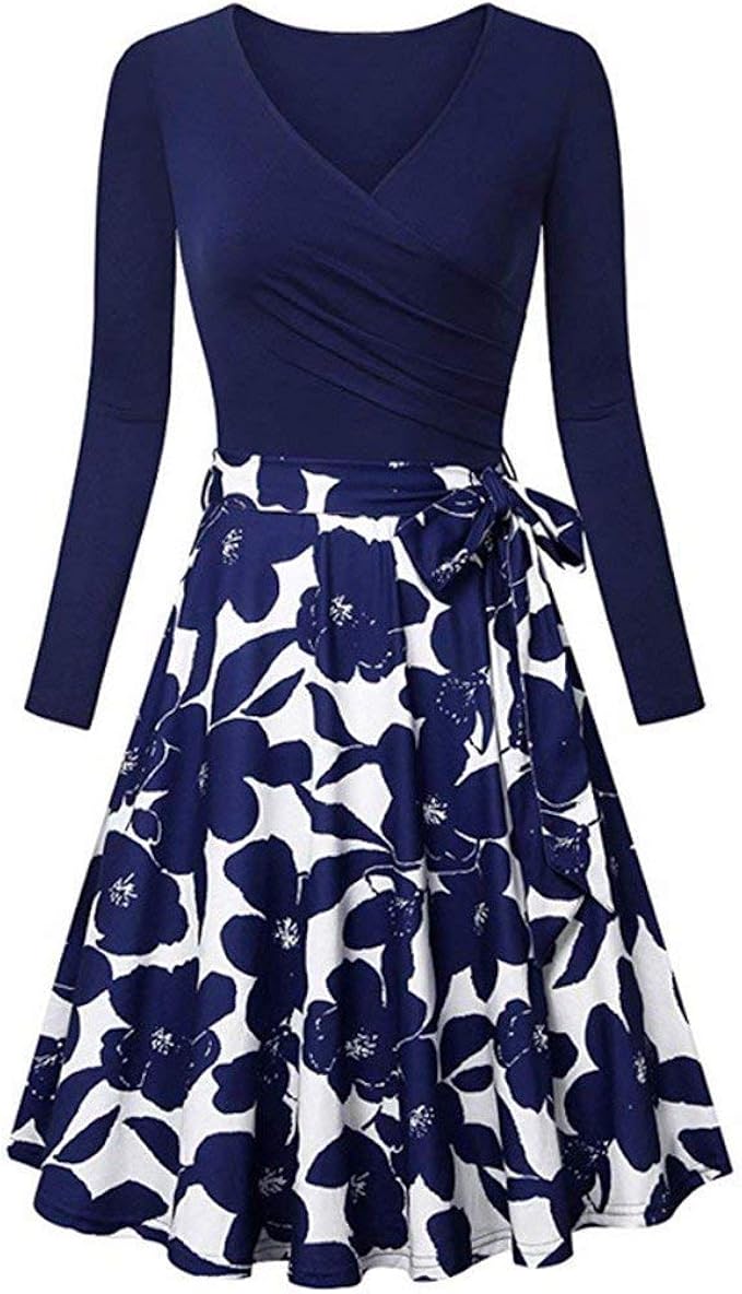 Sasstaids Heisses Kleid Damen Langarm V Neck Kleider Blumen Vintage Elegantes Ausgestelltes Kleid Mittellanges Kleid Lange Kleid Amazon De Bekleidung