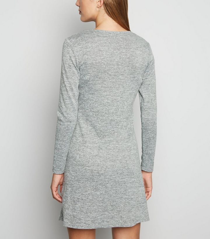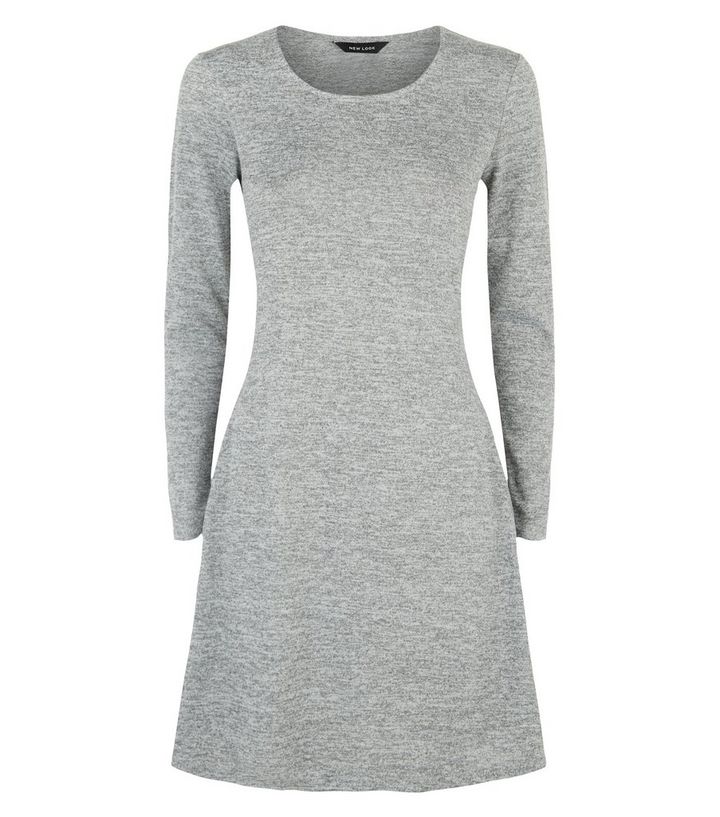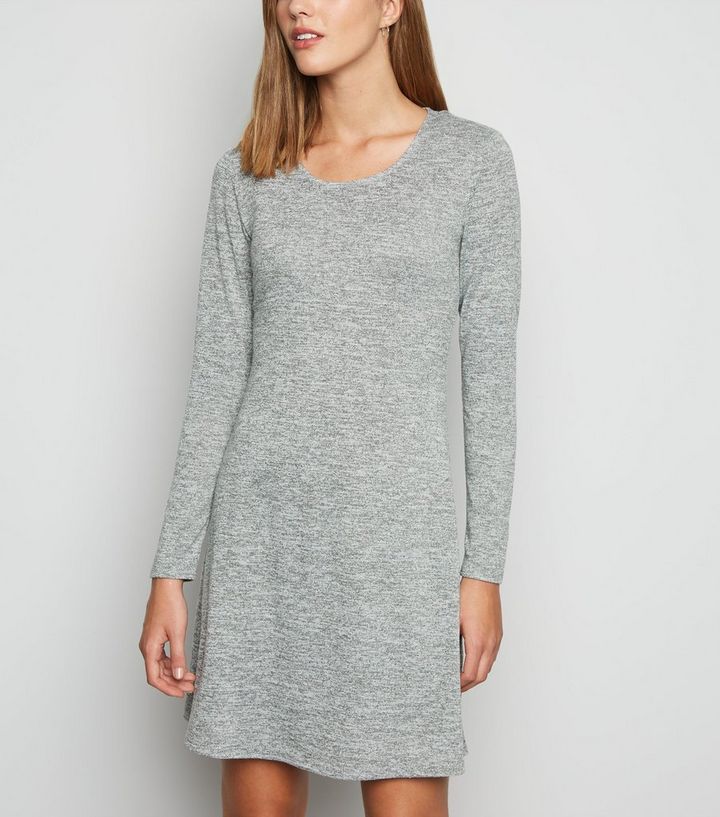 Langarmliges Ausgestelltes Kleid Aus Feinstrick In Grau New Look