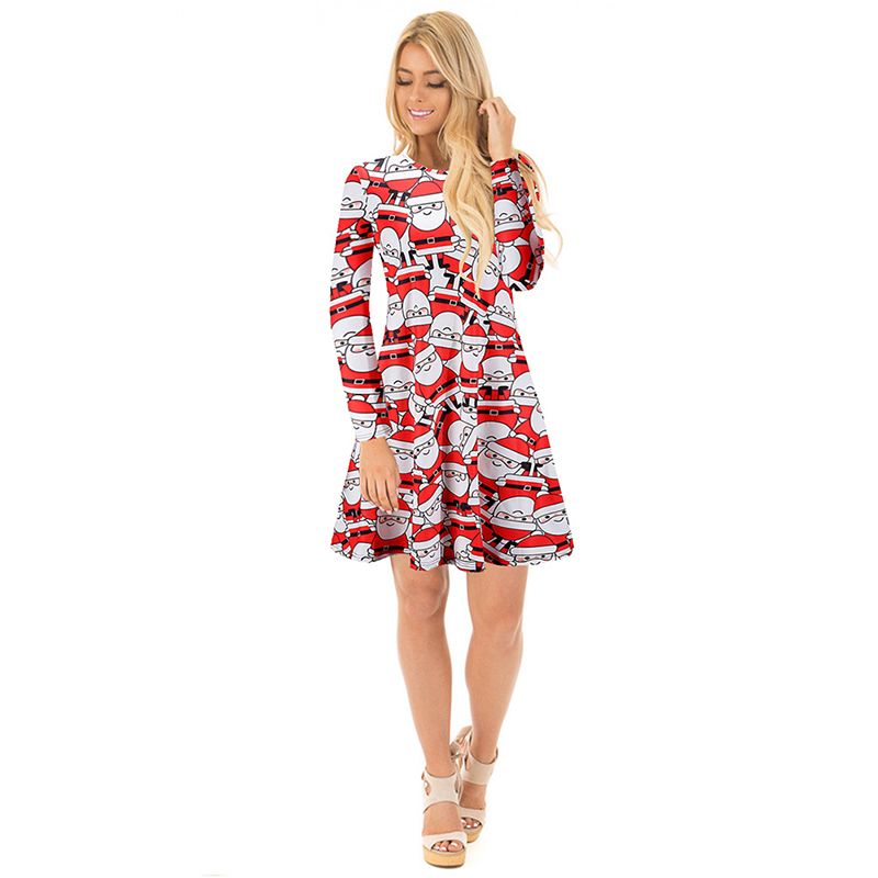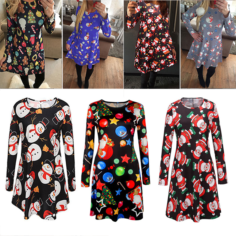 Shobdw Plus Grosse Damen Winter Jahrgang Stil Weihnachtsmann Drucken Tops Frauen Langarm O Hals Pullover Lang Bluse Kurz Abendkleid Rocke Lose Swing Ausgestelltes Kleid Dunn Cocktailkleid Amazon De Bekleidung