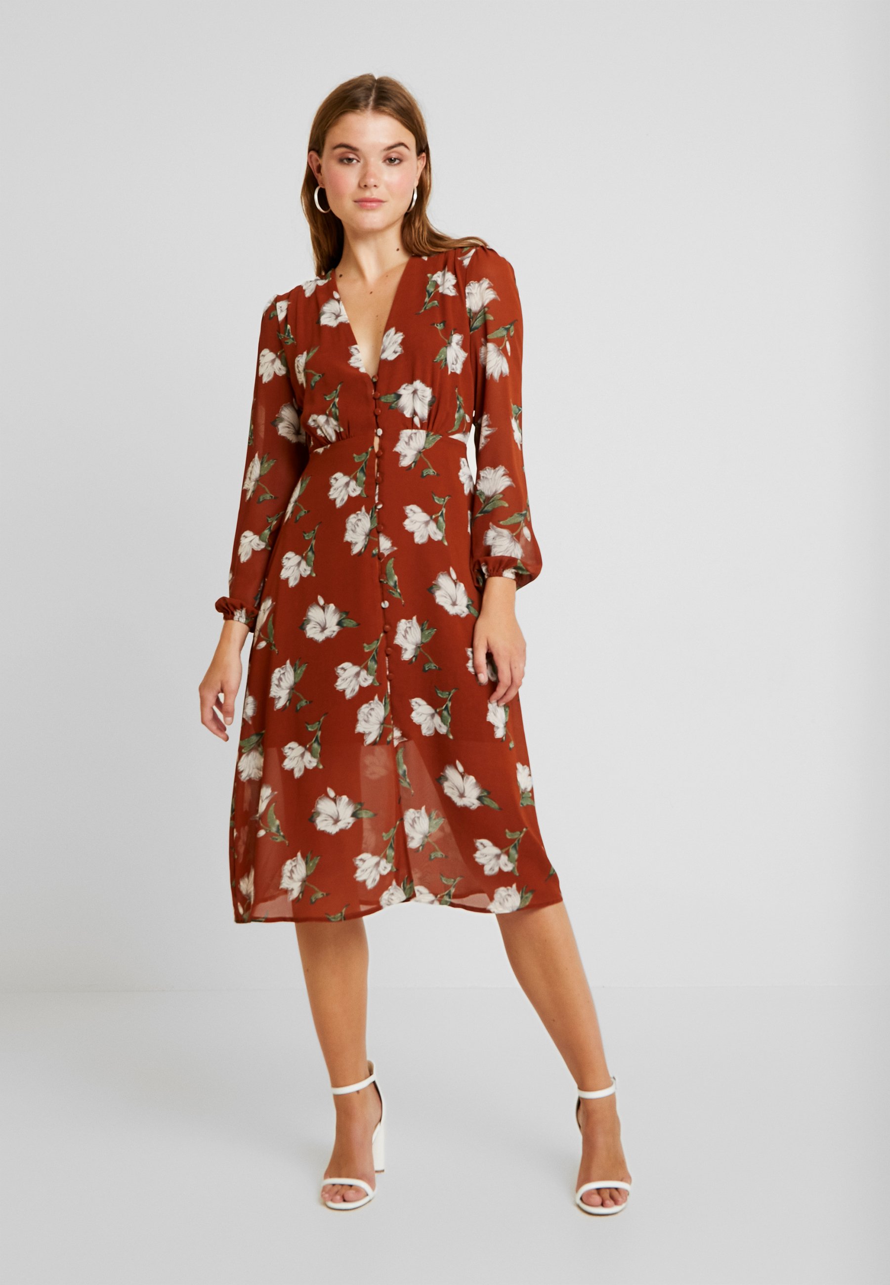 Missguided Floral Button Down Midi Dress Blusenkleid Brown Braun Zalando De