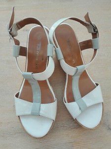Tamaris Weisse Sandalen Ledersandalen Gr 37 Weisse Sandalen Mit Korkkeilabsatz Ebay