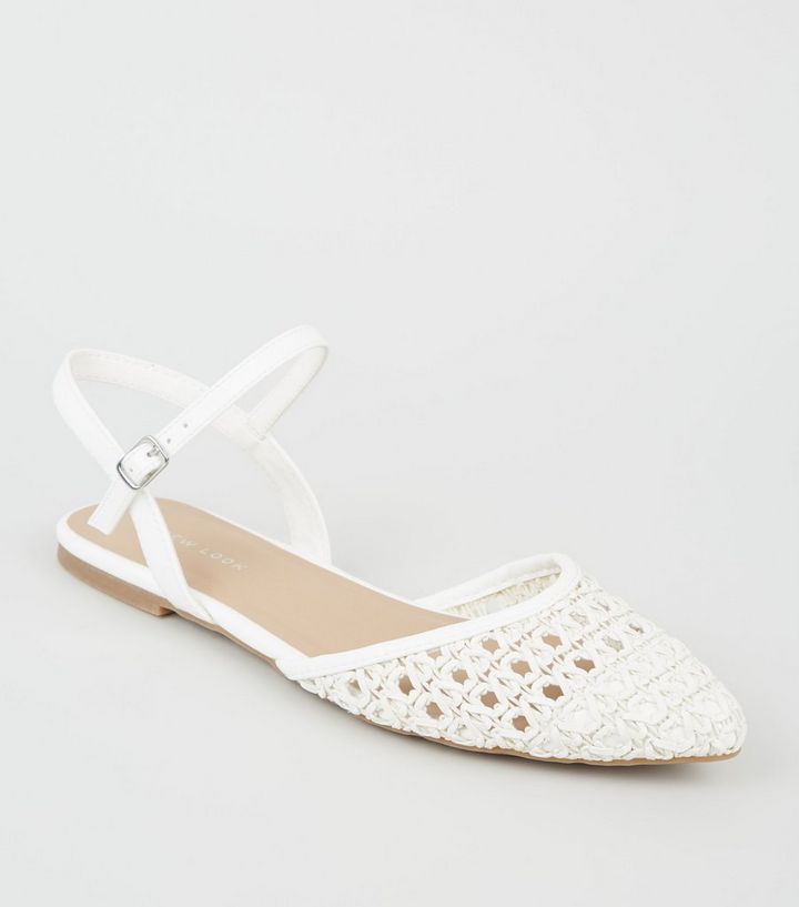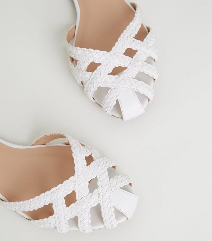 Wide Fit Weisse Sandalen In Gitteroptik Mit Geflochtenen Riemchen New Look