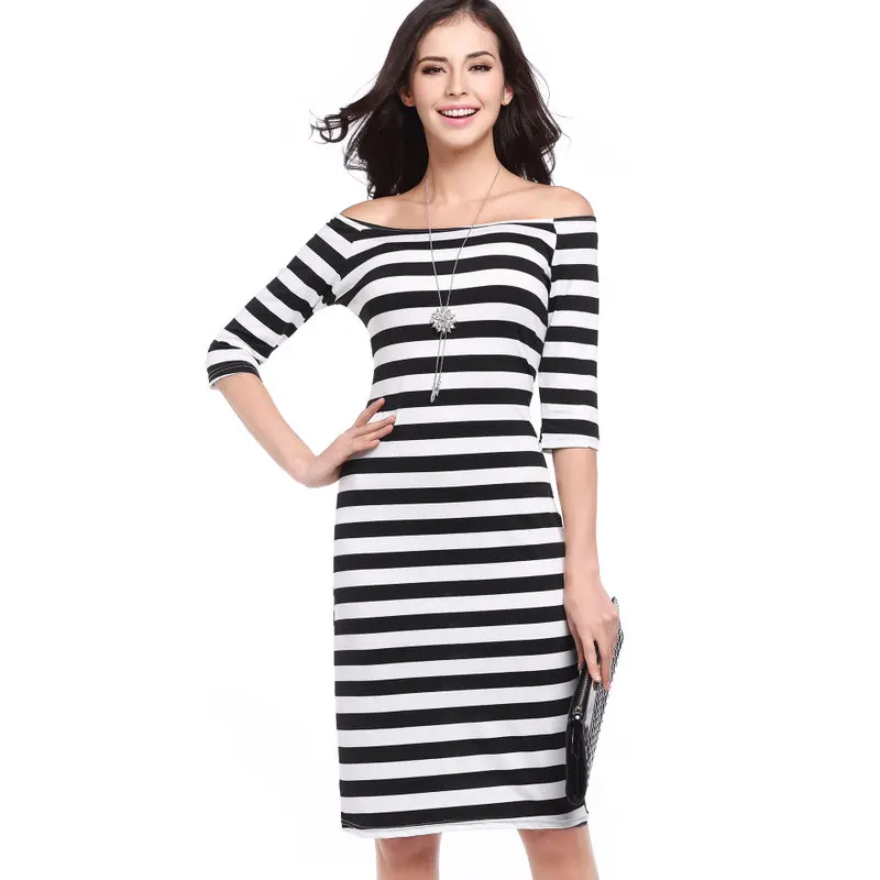 Party Angashion Damen Kleider Elegant Gestreift Schulterfrei Etuikleider Partykleider Bodycon Midi Kleid Bekleidung Luxdental Si