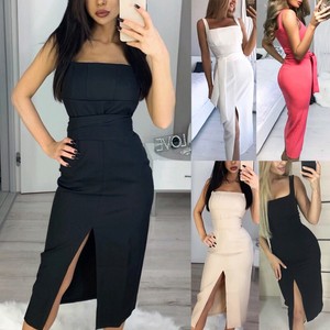 Frauen Sommer Midi Kleid Sexy Strumpfhalter Vorne Schlitz Kleider Elegant Belted Slim Ebay