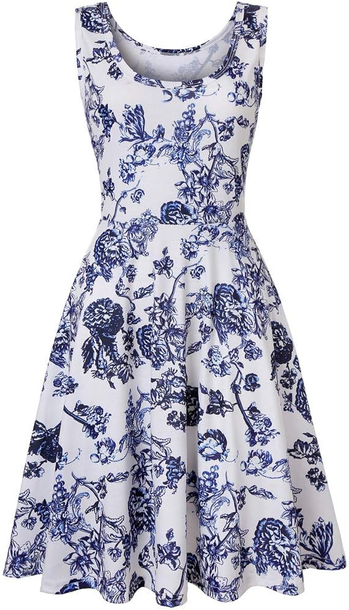 Sommerkleider Strand Kleid Frauen Abendkleid Damen Armellos Blumendruck Blumenkleid A Linie Lassige Kleidung Partykleid Amazon De Bekleidung