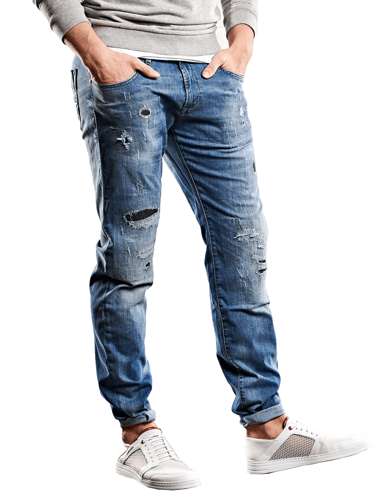 Herren Destroyed Jeans In Taubenblau Kaufen Emilioadani