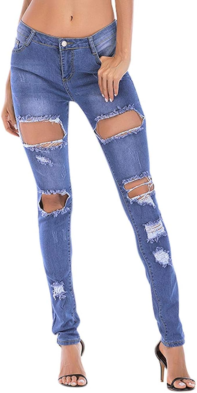 If She Damen Skinny Ripped Jeans Hose Extrem Zerrissen Blau Verwaschen Used Effet Super Stretch Grosse S Skinny Skinny Jeans Fashion