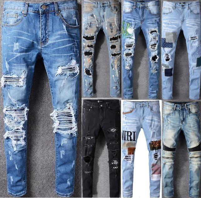 Fashion Autumn Stretch Ripped Designer Brand Jeans Hip Hop Slim Fit Men Broken Demin Destroy Jeans Blue And Black Pants Designer Ripped Jeans Fashion Ripped Jeansripped Designer Jeans Aliexpress