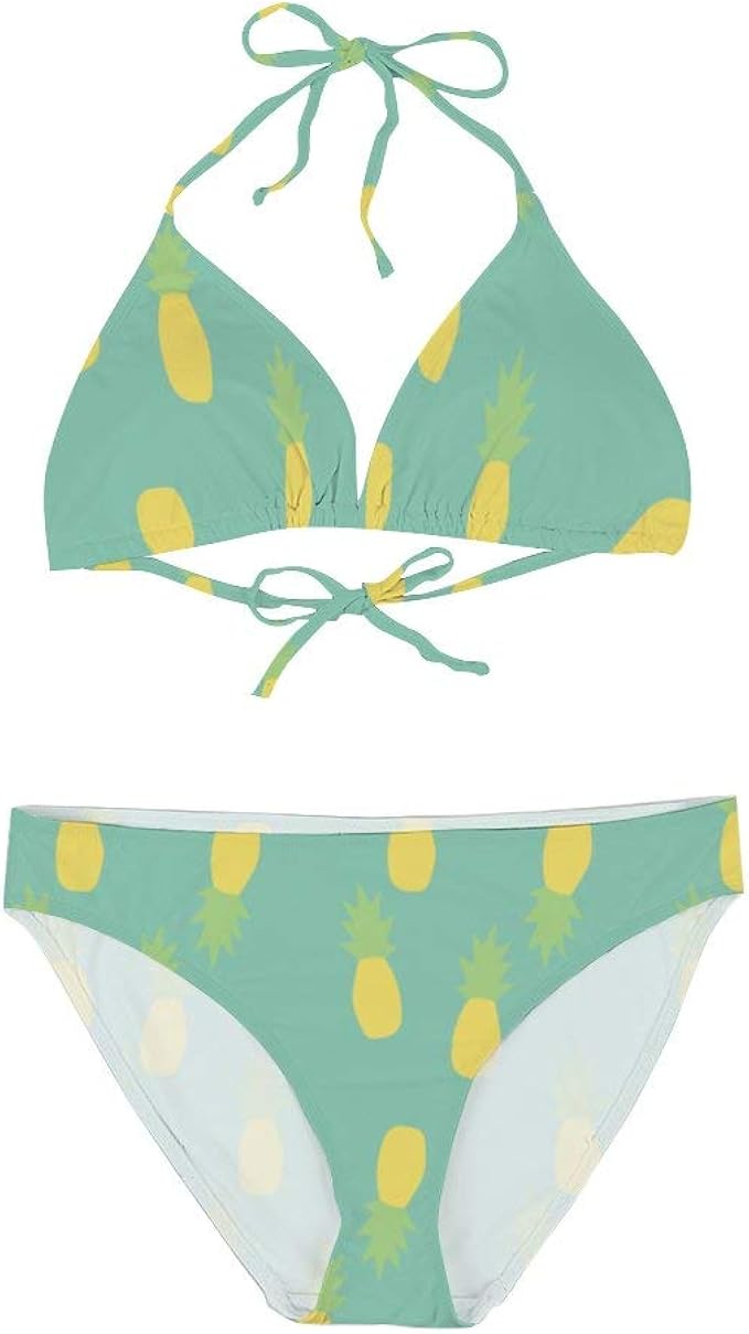 Dkisee Damen Bikini Set Zweiteiliger Badeanzug Bademode Gruner Hintergrund Und Ananas Strand Pool Bikini Swimsuit Fur Frauen Amazon De Bekleidung