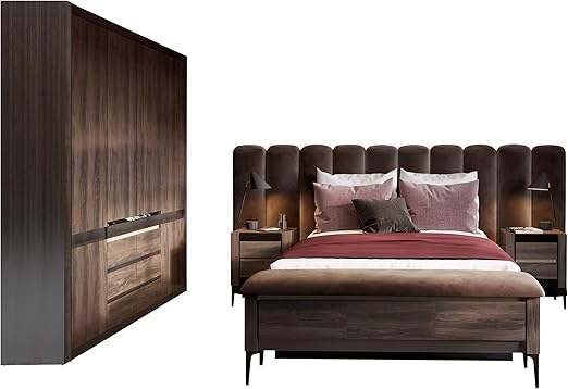 Schlafzimmer Set Notte I Doppelbett 2 Nachttisch Drehturenschrank Mit 4 Turen 2 Kleiderstangen 6 Einlegeplatten 7 Schubladen Schlafmobel Eiche Charlestone Tabak Schwarz Ohne Led Beleuchtung Amazon De Kuche Haushalt