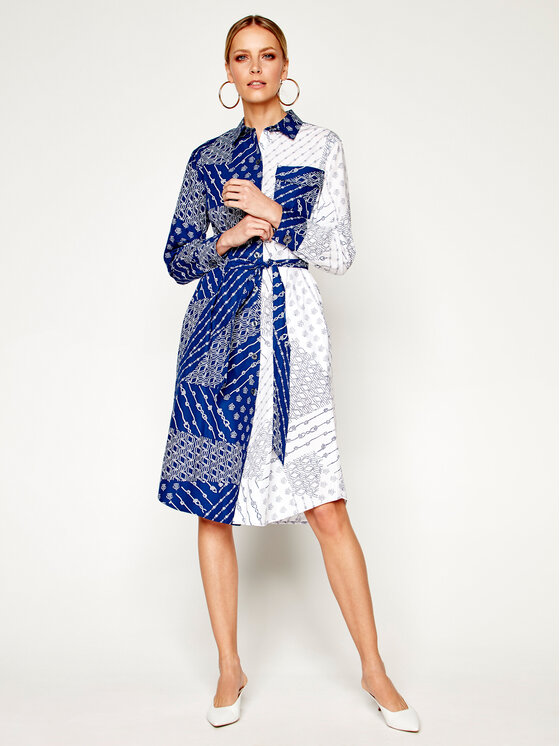 Kleider Jumpsuits Damen Tommy Hilfiger Gemustertes Hemdkleid Aus Viskose Patchwork Silk Stp Sky Captain Scatsite