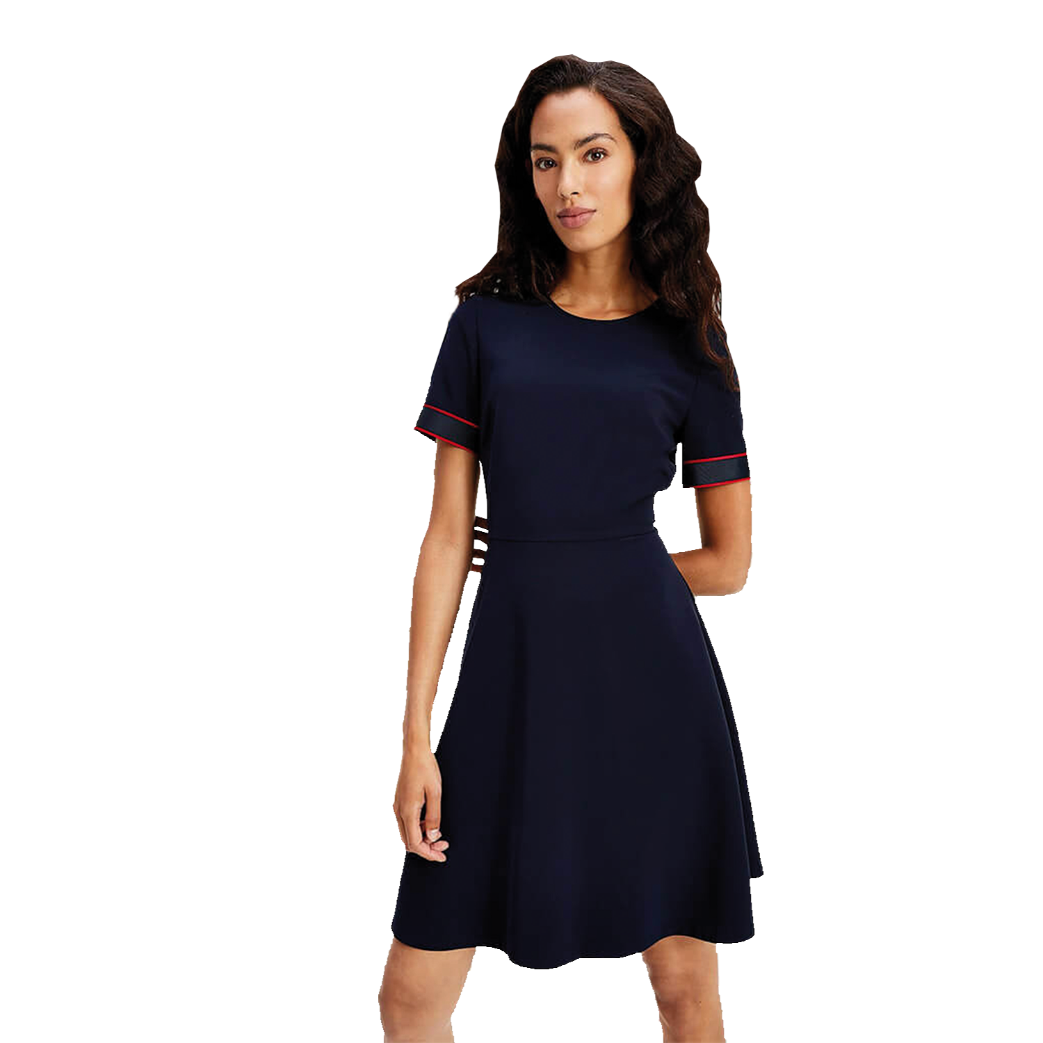 Tommy Jeans Women S Basic Fit Flare Short Sleeve Dress Blue Navy Blazer 416 Large Short Sleeve Dress Blue Women Jeans Tommy Jeans