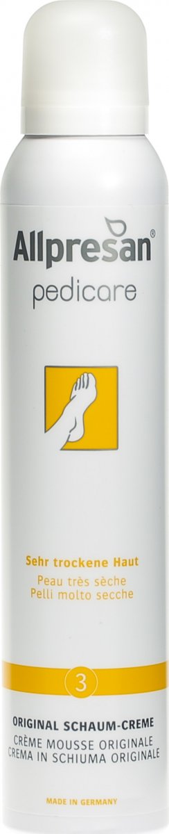 Die Allpresan Fuß spezial 3 Original SchaumCreme für sehr trockene Fußhaut glättet die Haut macht sie wieder elastischer und geschmeidiger Zudem mindert sie Druckstellen und beugt ihrer Entstehung vor Hinzu unterstützt die natürliche Schutzfunktion der Haut und wirkt der Neubildung von Hornhaut entgegen. Pflege für normale bis trockene Haut;. JOHANNES APOTHEKE Apotheker Dr Christian Engel Weinheimer Str 2a Mörlenbach Telefon 069 / 3324 Telefax 069 / 6992 info@jaapothekede.
