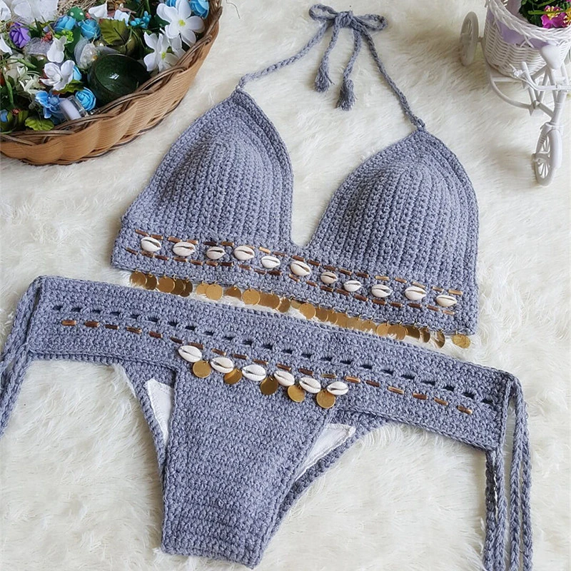 Neue Schalen Bikini Frauen Einstellbare Saiten Hakeln Badeanzug Gestrickte Perlen Conch Weiss Bademode Strand Meer Badeanzug Suit Suit Suit Whitesuit Women Aliexpress