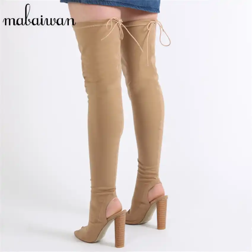Mabaiwan 17 New Fashion Stretch Knit Women Peep Toe Thigh High Sock Boots High Heel Over The Knee Boots Slim Fit Shoes Woman Shoes Woman Botas Women Botasbotas Fashion Aliexpress