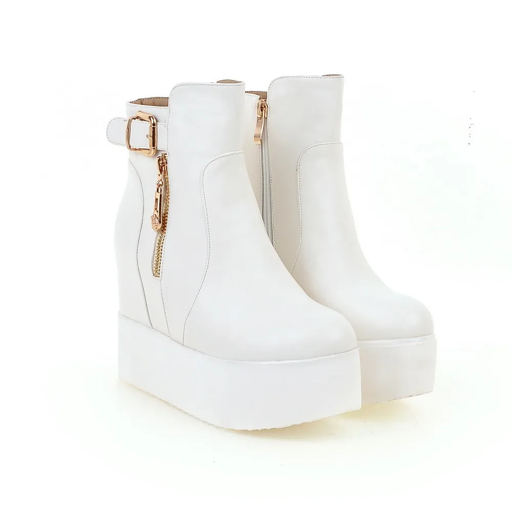 Audi A6 Billige Kaufen Frauen Ankle Booties Verkauf Weiss Schuhe Schwarz Super Hohe Plattform Heels Gurtel Schnalle Zipper Casual Keil Ferse Stiefel Beige Preise Online
