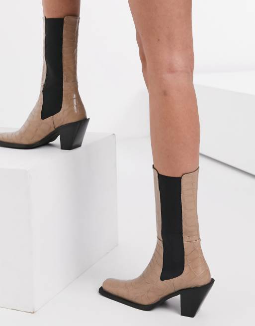 E8 By Miista Cosima Hohe Ankle Boots Aus Leder Mit Eckigem Zehenbereich In Kroko Taupe Asos