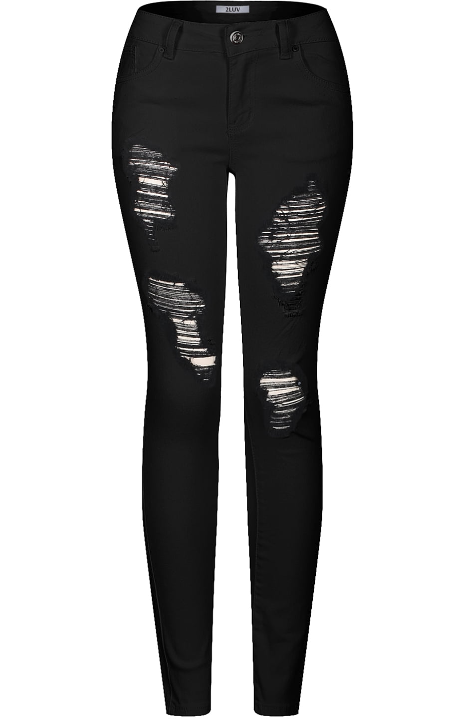 2luv Stretchy 5 Pocket Destroyed Black Skinny Jeans Walmart Com Walmart Com