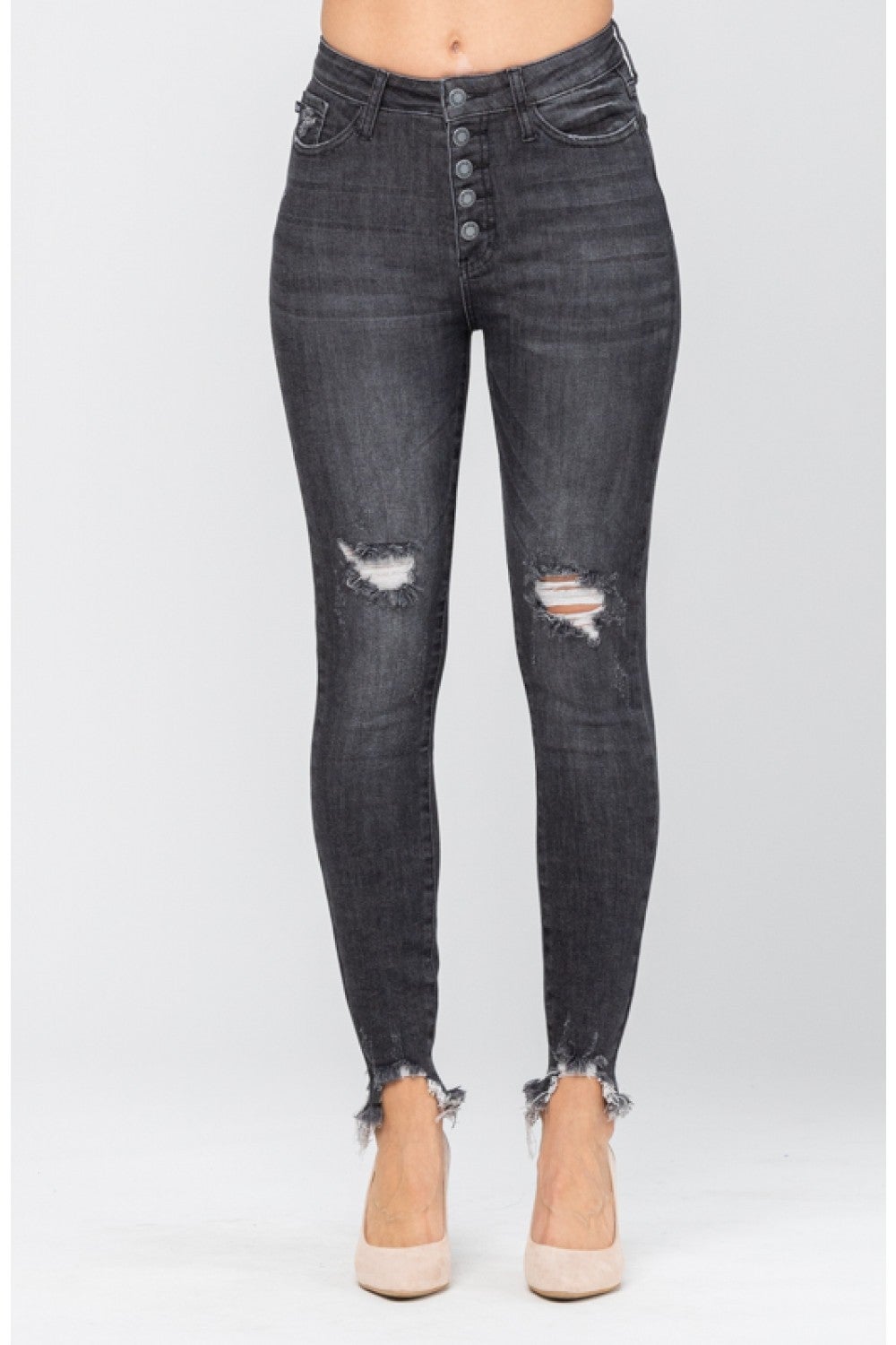 Judy Blue Ladies Destroyed Button Fly Black Skinny Jeans Sharpe S Department Stores