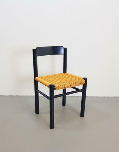 Moderner Schwarzer Lackierter Vintage Stuhl Aus Holz Und Korbgeflecht Bei Pamono Kaufen