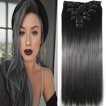 Haarteile Fur Hochzeit Neverland 24inch 7pcs 16 Clips Zwei Ton Lange Gerade Haare Voller Kopf Clip In Haarverlangerungen Perucke Haarteil Schwarz Bis Dunkelgrau Amazon De Beauty