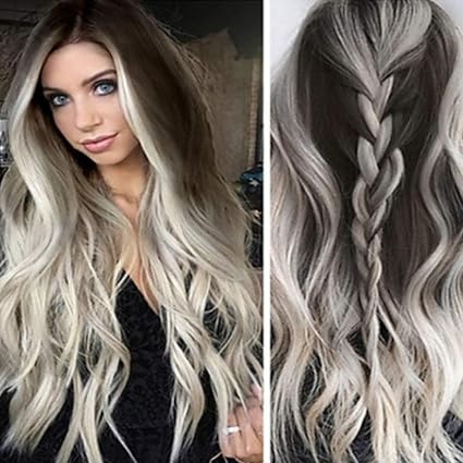Lidiwee Frauen Lange Gewellte Haare Perucke Silber Dunkelgrau Synthetische Lace Front Perucken Party Naturlich Gewelltes Haar Perucken Lange Haare Wellen