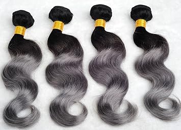 Dunkelgrau Brasilianisches Ombre Body Wave Virgin Hair Schuss 4 Bundel 400 G 100 Echthaar Weave Extensions 1b Grau Farbe 14 14 14 35 6 Cm Amazon De Beauty