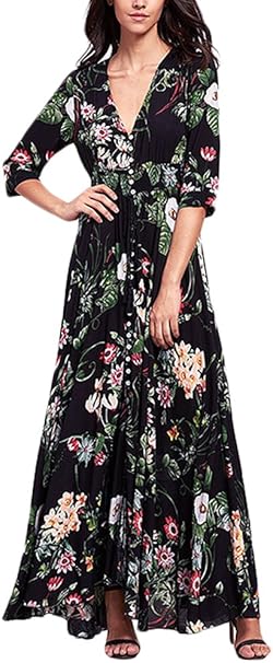 Strandkleider Damen Elegant Sommer Kleid Lang Vintage Hippie Bohmen Ethno Style Druck Halber Armel V Ausschnitt Einreihig Sommerkleider Mode Casual Lange Kleider Boho Kleid Jetzt Unschlagbar Gunstig Shopping24 De