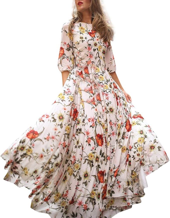 Vectry Maxikleid Damen Halbe Armel Sommerkleider Elegant Blumen Lang Kleid Strandkleid Amazon De Bekleidung