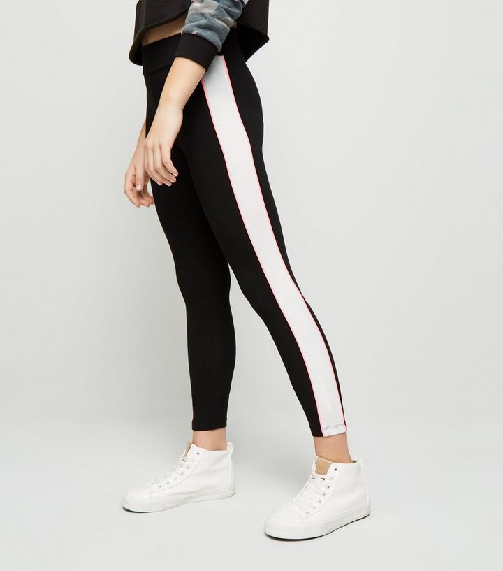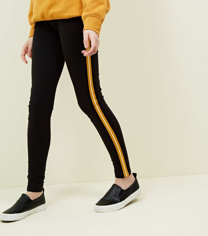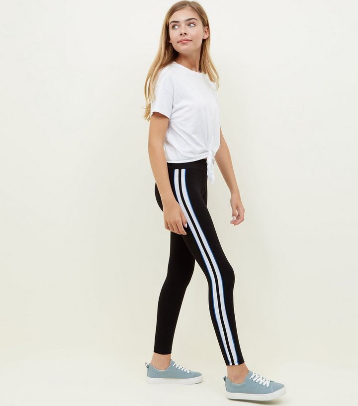Teenager Schwarze Leggings Mit Seitlichen Streifen New Look