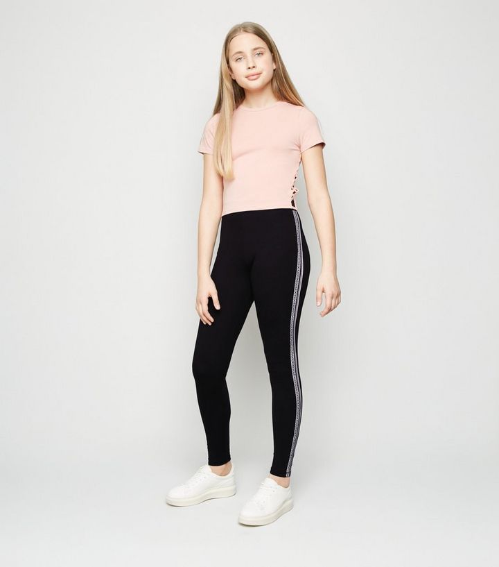 Girls Schwarze Leggings Mit Seitlichen Abgesetzten Streifen New Look