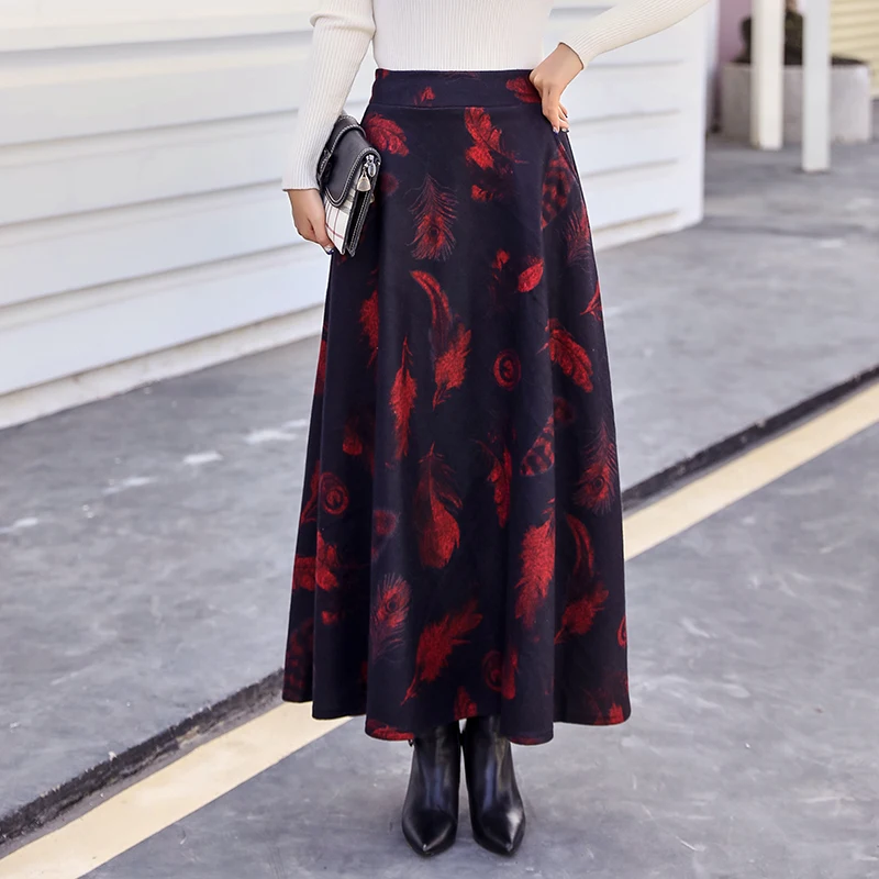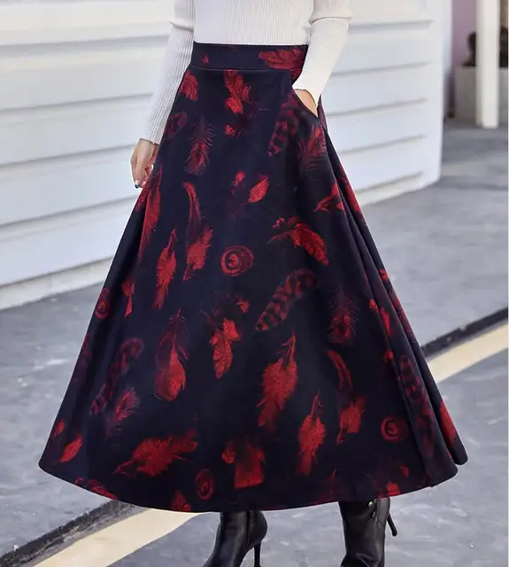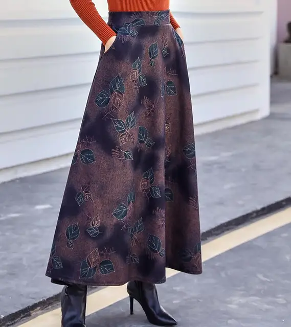 Damen Rock Lang Winterrock Wollrock Warm Hohe Taille Elegante Vintage Rock Casual A Linie Maxi Rock Faltenrock Amazon De Bekleidung