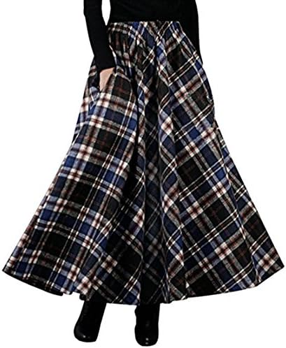 Damen Winterrock Elegant Wollrock Lang Rock Warm Plaid Maxirock Wolle Elastische Taille Hohe Taille Rocke Amazon De Bekleidung