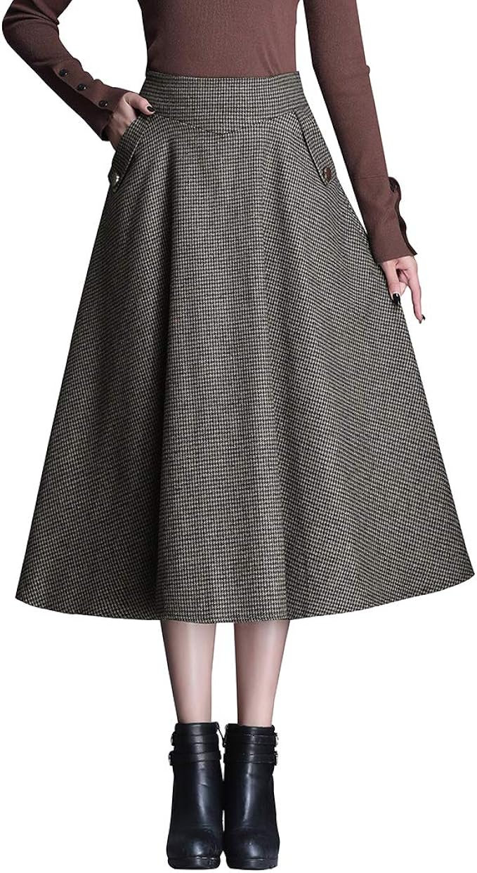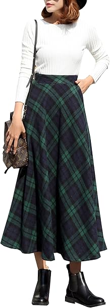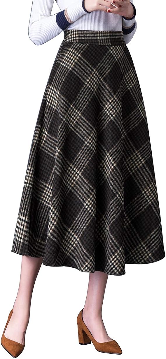 Damen Elegant Wollrock Lang Rock Warm Winterrock Kariert Maxi Rock Wolle Hohe Taille Winterrock Herbst Mode Rocke Amazon De Bekleidung