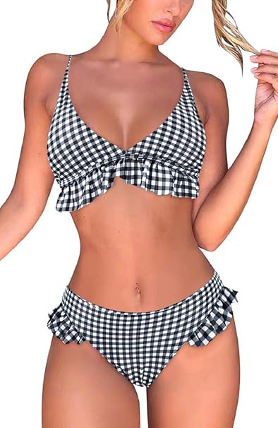 Yuson Girl Damen Badeanzug Ruschen Bikini Sets Figurschmeichelnder Badeanzug Zweiteilige Bademode Strandkleidung Ruffles Bikini Set Damen Sommer Streifen Bademode Tankini Bademode Amazon De Bekleidung