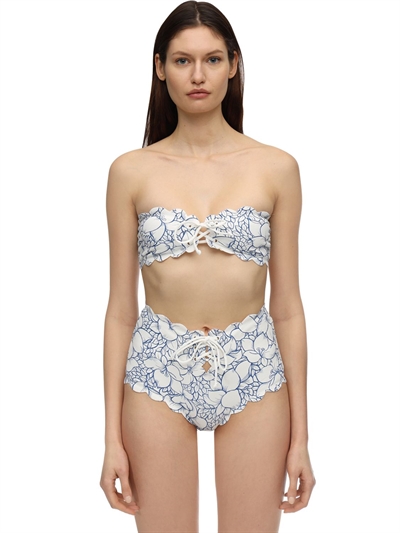 White Embellished Bandeau Top And High Waist Bottom Lenny Niemeyer