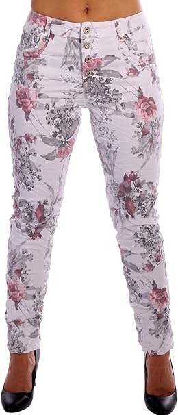 Karostar Baggy Damen Jeans Weiss Flower Print 5 Pocket Croppedlook Bis Gr 48 40 Amazon De Bekleidung