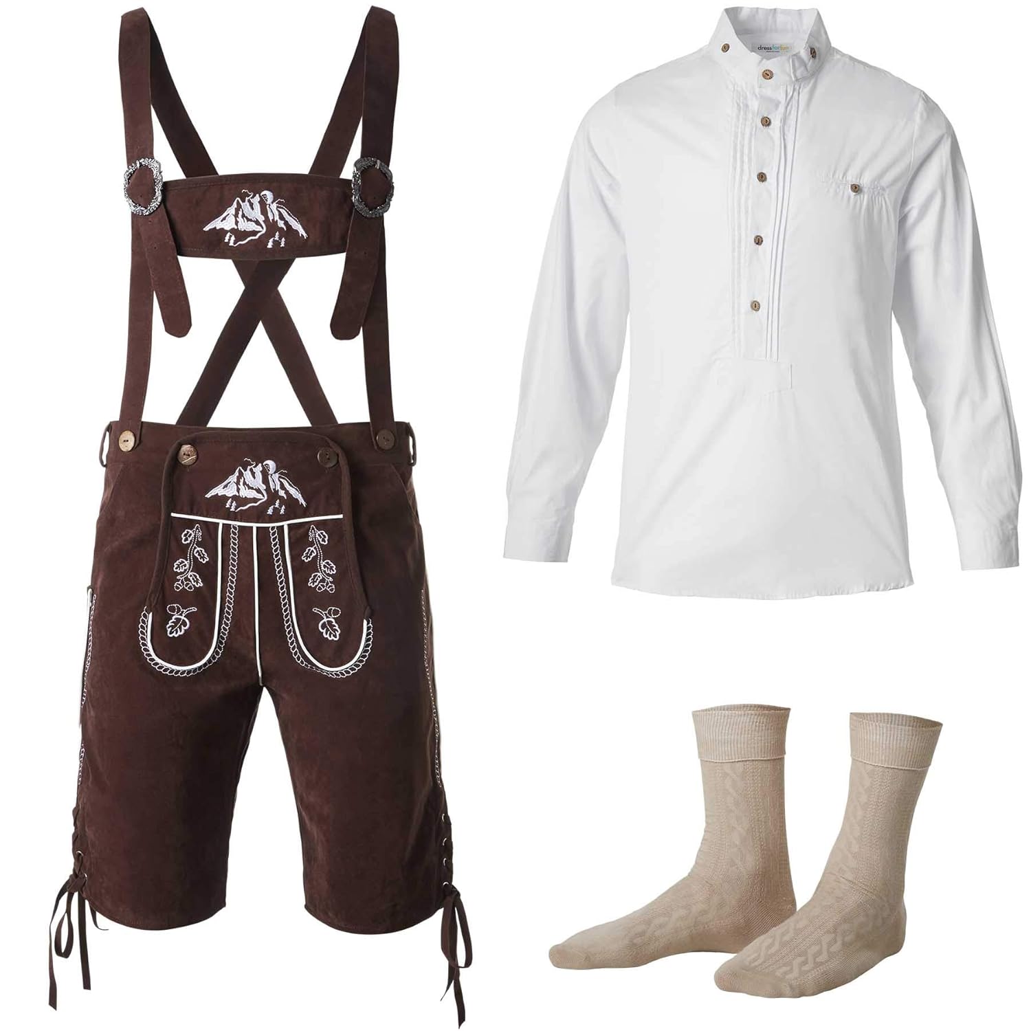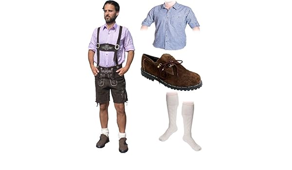 Herren Trachten Set B 5 Teilig Trachten Lederhose Dunkelbraun 46 60 Trachtenhemd Schuhe Socken Oktoberfest Kurz Bekleidung Herren