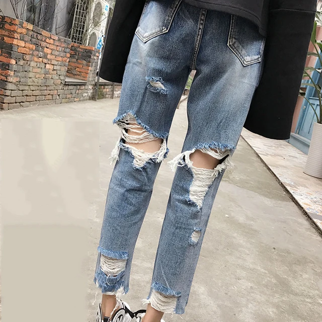 Wild Sexy Hole Beggar Pants Leisure Holes Boyfriend Jeans Womens Destroyed Hole Skinny Faded Ripped Denim Cotton Ninth Jeans Boyfriend Jeans Jeans Woman Destroyedboyfriend Jeans Women Aliexpress