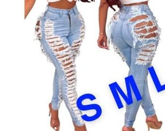 90 S High Waist Distressed Boyfriend Jeans All Sizes Denim Jeans Ripped Boyfriend Jeans Distressed Boyfriend Jeans