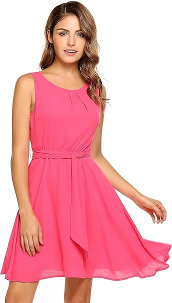 Acevog Damen Feminines Kleid Aus Zartem Chiffon Brautjungfernkleid Im Empire Stil Partykleid Hochzeit Kleid A Linie Kleider Armellos Knielang Amazon De Bekleidung