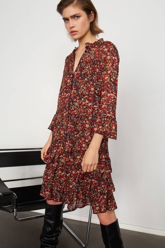 Feminine Mid Length Dress With Flowers Kala Fashion