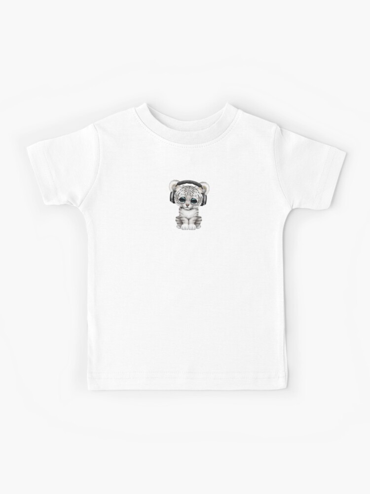 Netter Baby Weisser Tiger Deejay Der Kopfhorer Tragt Kinder T Shirt Von Jeffbartels Redbubble