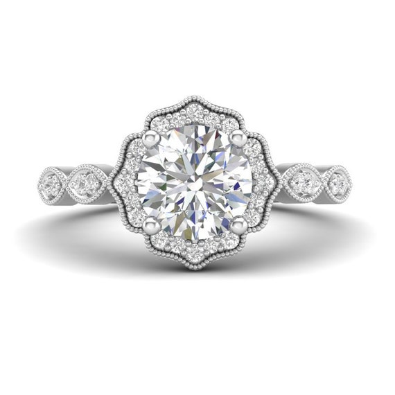 Vintage Moissanite Engagement Ring White Gold Diamond Cluster Etsy Vintage Engagement Rings Morganite Engagement Ring Set Rose Engagement Ring