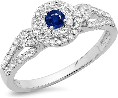 Damen Ring 14 Karat Weissgold Blau Saphir Diamant Vintage Halo Verlobungsring Amazon De Schmuck