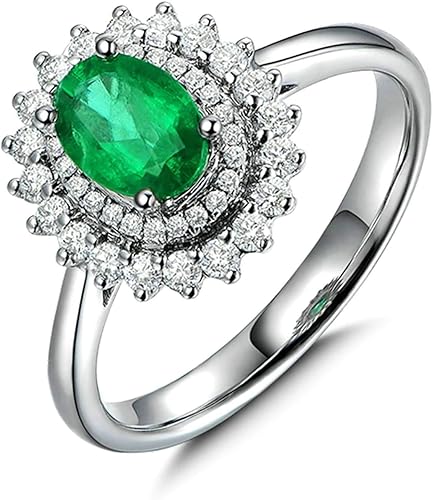 Daesar Damen 18 Karat Weissgold Ring Vintage Blume Halo Mit 1 15ct Oval Smaragd Verlobungsring Ring Hochzeit Weissgold Diamant Amazon De Schmuck