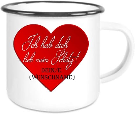 Crealuxe Emailletasse M Wunschname Ich Hab Dich Lieb Mein Schatz Dein E Wunschname Kaffeetasse Mit Motiv Bedruckte Tasse Mit Spruchen Oder Bildern Amazon De Kuche Haushalt