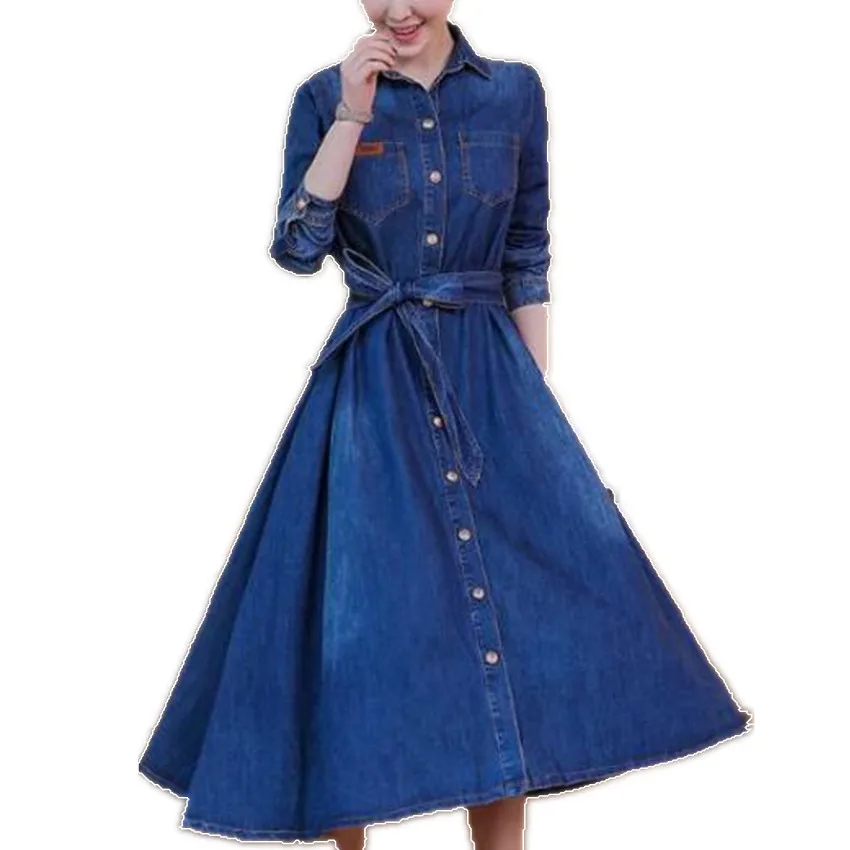 Fruhling Frauen Mode Jeans Kleid Dunne Denim Drehen Unten Kragen Kleid Damen Knie Lange A Linie Kleid Plus Grosse 2xl Kleider Aliexpress