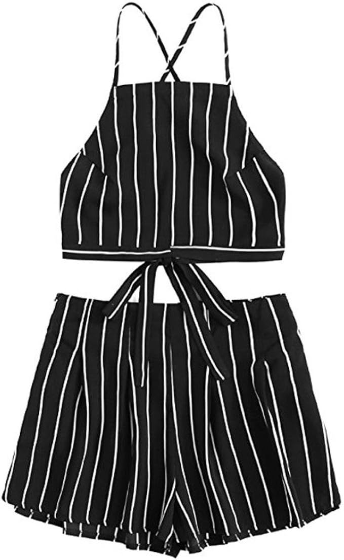 Dasongff Women S Overalls Elegant Two Piece Sleeveless Striped Crop Top Shorts Summer Jumpsuit Jumpsuit Jumpsuit Tank Tops With High Waist Shorts Amazon De Bekleidung